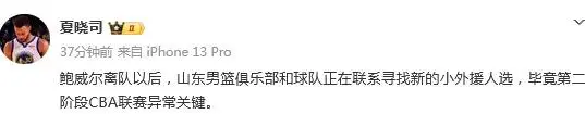 北京时间2月12日,根据山东男篮官方社媒公示,迈尔斯・鲍威尔因个人原因,将无法代表俱乐部出战本赛季剩余赛事。结合球队整体布局与阵容发展需要,经俱乐部与球员友好协商,双方正式达成解约。