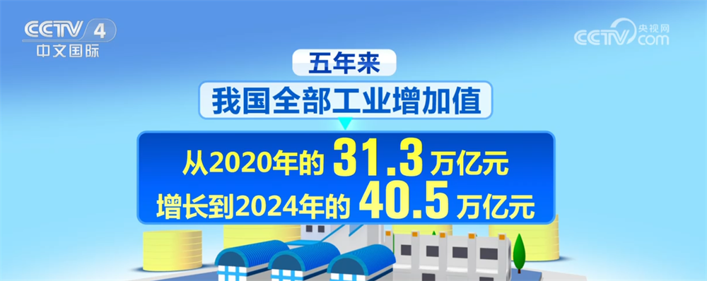 “十四五”期间,我国制造业数据亮眼。五年来,我国全部工业增加值从2020年的31.3万亿元增长到2024年的40.5万亿元,制造业增加值增量预计将达到8万亿元,对全球制造业增长贡献率超过30%。总体规模连续15年保持全球第一;制造业门类体系完整优势更加明显,在全世界504种主要工业产品中,我国大多数产品的产量位居全球第一。